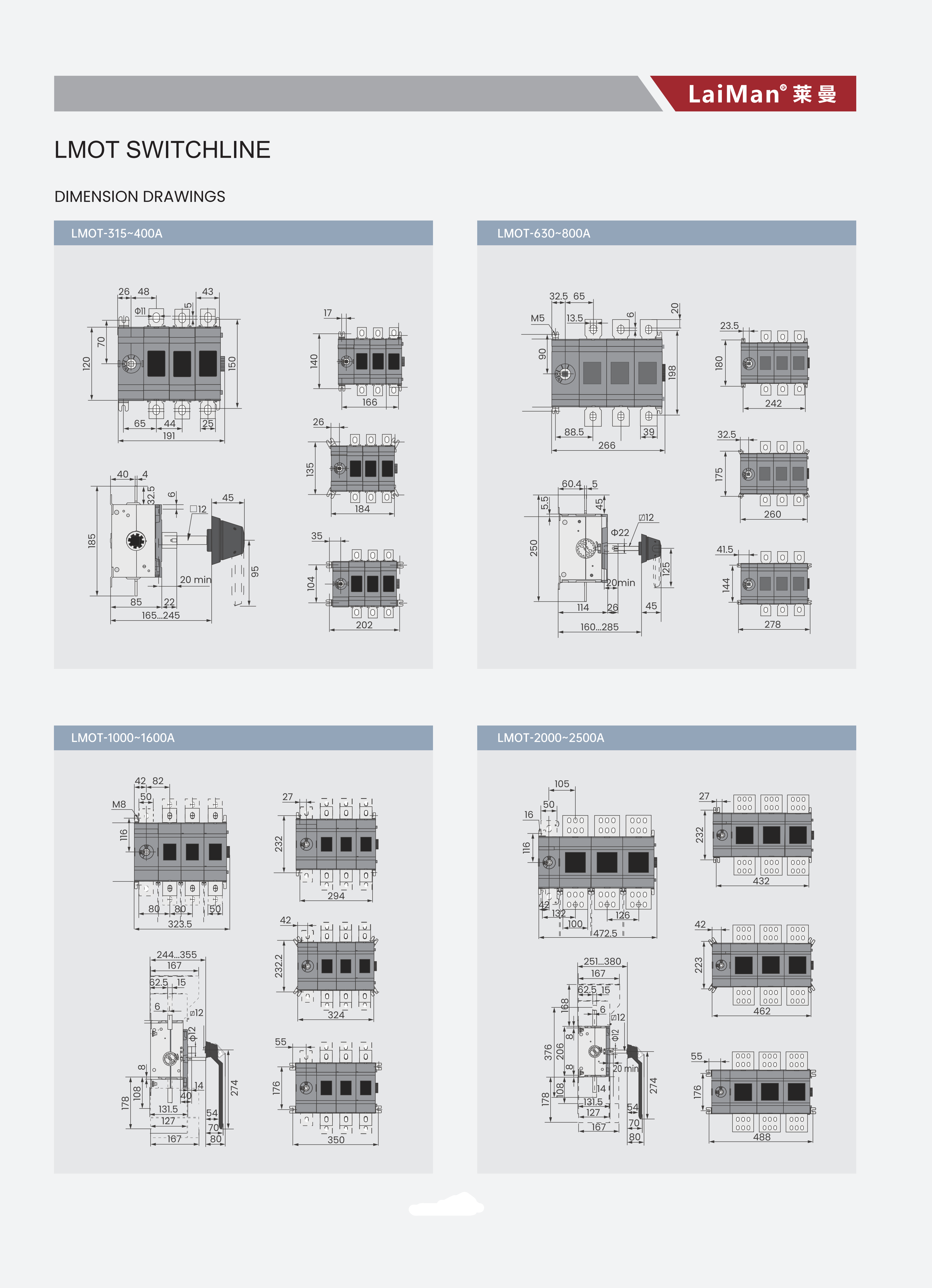LMOT系列負荷隔離開(kāi)關(guān),適用于交流50Hz、額定電壓交流690V、直流440V,約定發(fā)熱電流至4000A的成套配電裝置中。帶有滅弧室的隔離開(kāi)關(guān)開(kāi)關(guān)用作手動(dòng)不頻繁接通與分段負載電路。開(kāi)關(guān)造型美觀(guān),新穎簡(jiǎn)單,操作方便,而且正面帶有觀(guān)察窗,可直接查看觸頭位置。